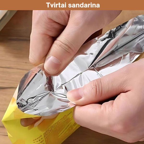 Šis sandariklis sandariai užlydo folinius maišelius, apsaugodamas maistą nuo oro, drėgmės ir kvapų – be jokių papildomų dėžučių.
