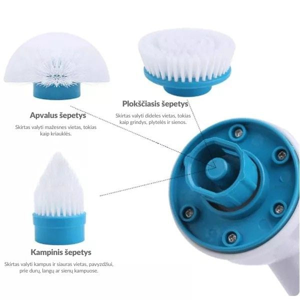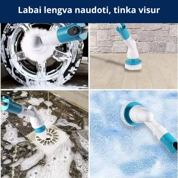 Šis elektrinis valymo šepetys iš esmės palengvina namų tvarkymą – jis suka šepetį daugiau nei 300 aps./min. greičiu ir pašalina purvą, kurio įprastos šluostės neįveikia. Idealiai tinka voniai, plytelėms, siūlėms, dušo kabinai, virtuvei ar net automobilio ratlankiams.