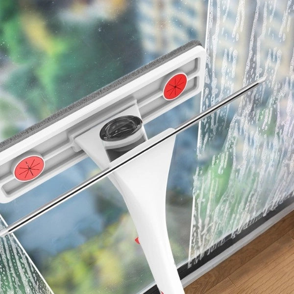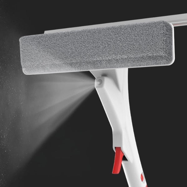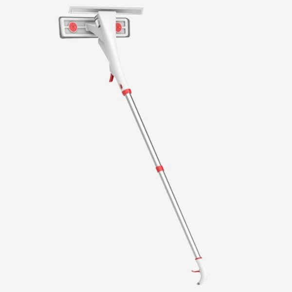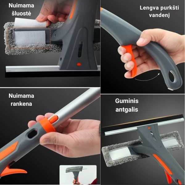 Dėl integruoto purškiklio ir teleskopinės rankenos šis įrankis leidžia patogiai valyti tiek vidaus, tiek išorės langus be jokio vargo.