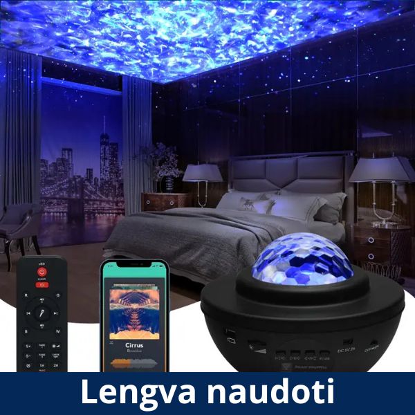 LED žvaigždžių projektorius su muzika ir nuotolinio valdymo pultu – magiškas dangus jūsų kambaryje