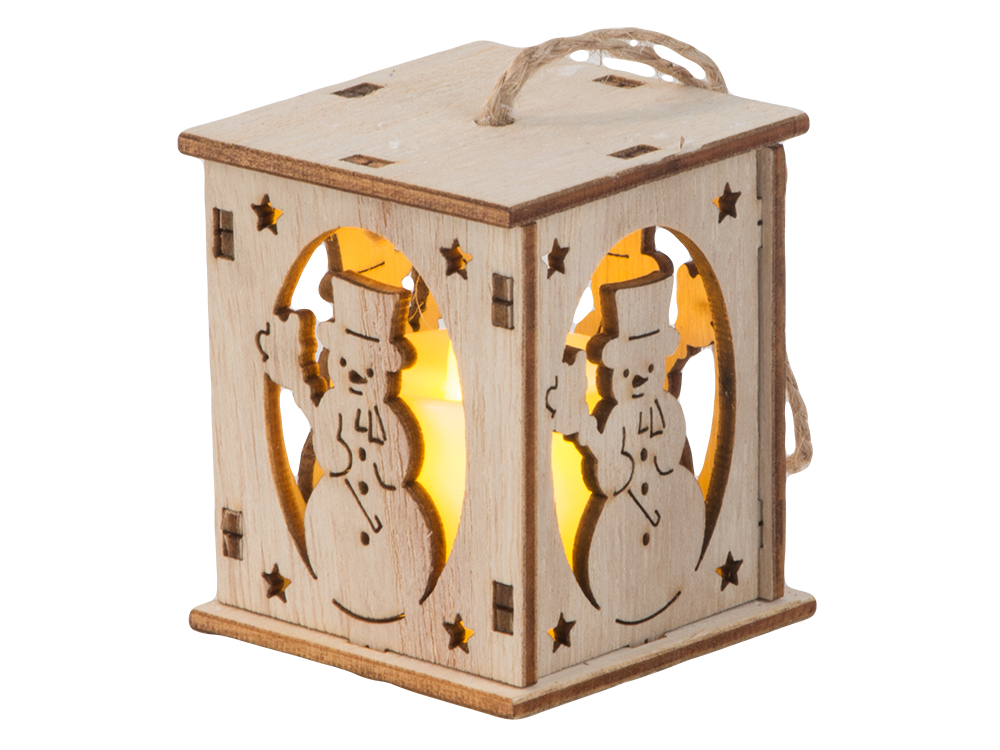 Medinė kabinama Kalėdinė LED žibinto dekoracija eglutei – jauki šventinė nuotaika jūsų namams