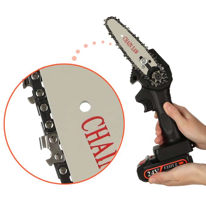Pjaukite viena ranka - mūsų mini grandininis pjūklas turi neslystančią rankeną, ergonomišką dizainą, jį lengva paimti į ranką.