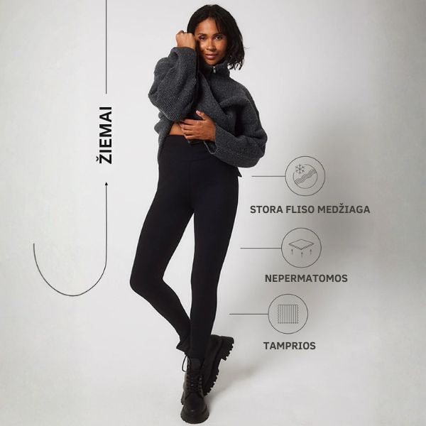 Šiltos flisinės tamprės su aukštu liemeniu – komfortas ir šiluma net šalčiausią dieną (universalus dydis)