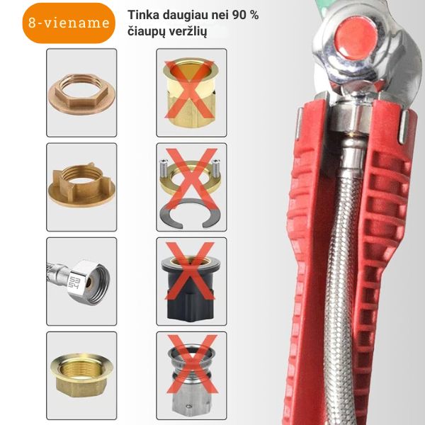 8-viename kriauklių ir vamzdžių raktas – lengvas remontas net siauriausiose vietose